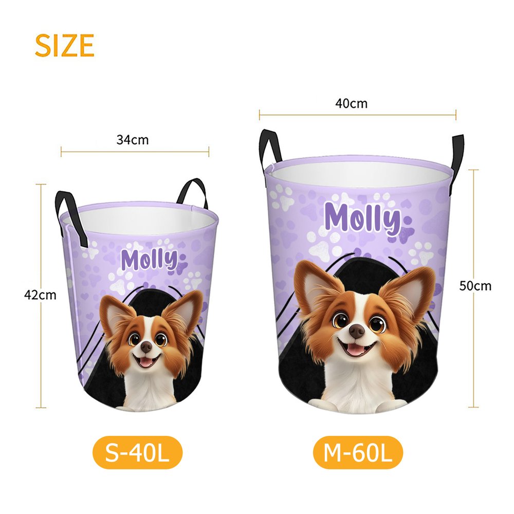 Our laundry basket features a cute and realistic 3D cartoon dog design that captures your pet's lively personality and spirit. You can choose your pet's breed and add their name, and the background can be decorated with paw prints for a fun touch.