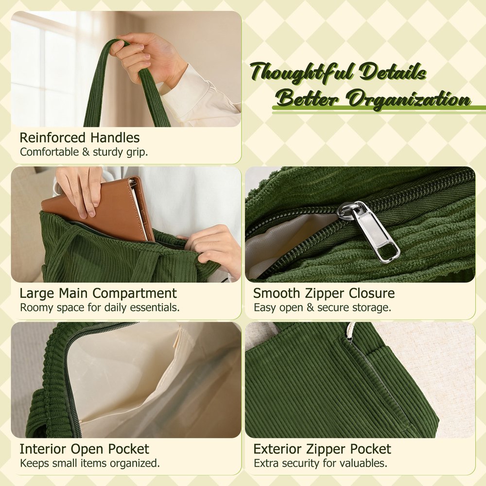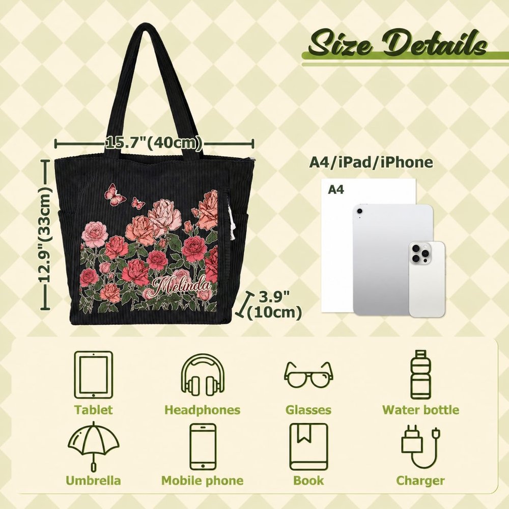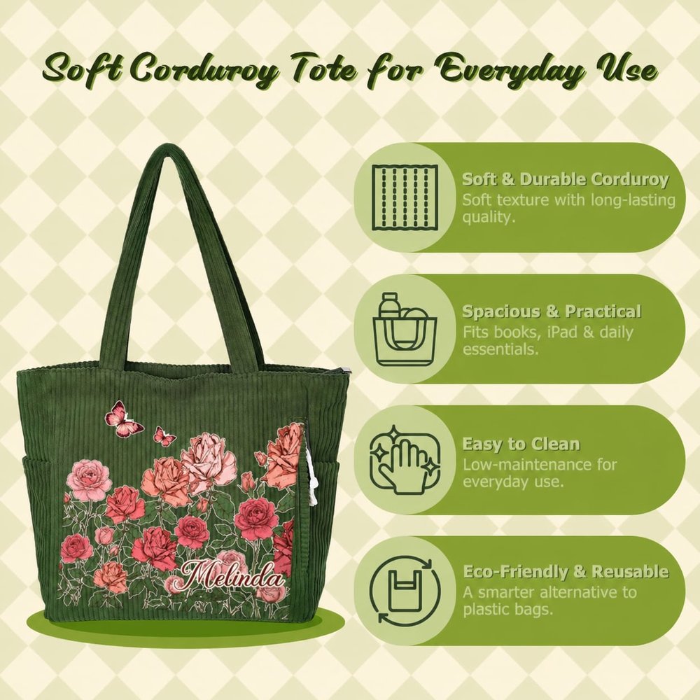 Made from soft, thick, high-quality corduroy, this design is comfortable to the touch and resistant to deformation. It features wide shoulder straps for a comfortable and unrestricted fit. The large main compartment and side pockets offer both storage and decorative appeal.